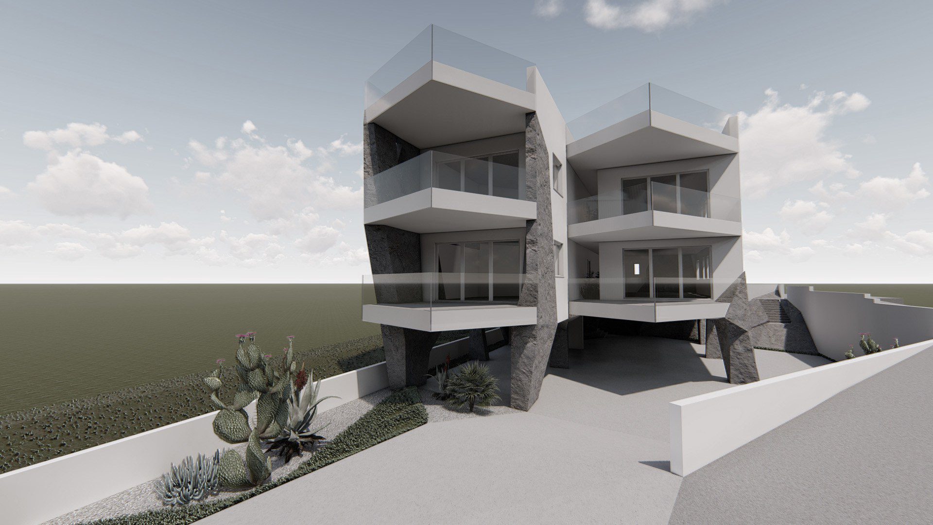 Conceptual project for an apartment building with four apartments, second row by the sea.