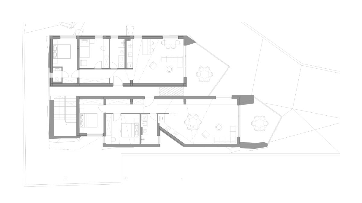 Due to the small size of the plot for the desired number of residential units, the residential units had to be above the garage.
